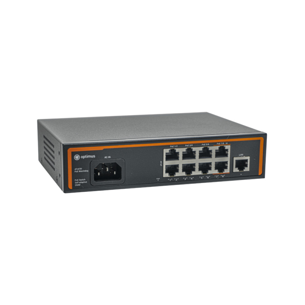 Коммутатор Optimus U1I-8F2b/1F - неуправляемые PoE-коммутаторы. Коммутаторы оснащены портами 10/100 Мбит/с с поддержкой PoE (технология передачи питания по сетевому кабелю вместе с данными) к каждому из которых можно подключать сетевые устройства (IP-камеры, IP-телефоны, беспроводные точки доступа), а также с функцией Watchdog, она позволяет перезагрузить "зависшее" устройство, подключенное к коммутатору, путем снятия и повторной подачи напряжения.