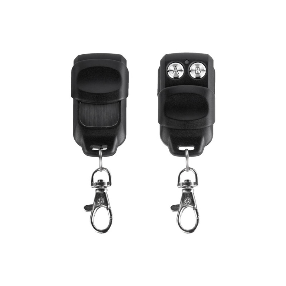 Расстояние передачи до 100 м (прямая видимость), рабочая частота 433 мГц, 128 регистрируемыхбрелоков, Тип элемента питания 27А - 12В 2 клавиши. Размер 60 × 30 × 15 мм