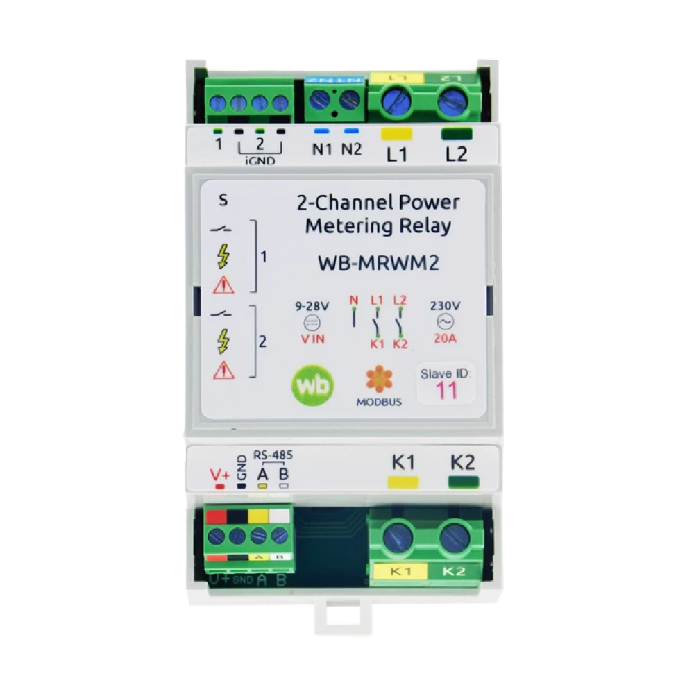 Модуль реле 2-канальный с измерением мощности и контролем напряжения WB-MRWM2