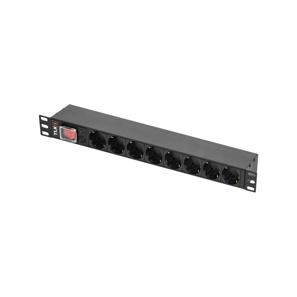 Блок розеток TLK 19" 9 гнезд евророзетка, макс. нагрузка 10 А, без шнура питания, метал. корпус